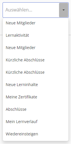 Das Dashboard ist Ihre zentrale Anlaufstelle, um sich einen Überblick über all Ihre Lernaktivitäten sowie die Aktivitäten in Ihrer Lernplattform zu verschaffen. Von dort aus haben Sie Zugriff auf alle Funktionen, die Ihnen zur Verfügung stehen.