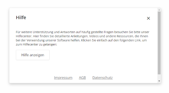 Im Menü “Hilfe” finden Sie nützliche Informationen, die Ihnen bei der Verwendung des Portals helfen können. Hier finden Sie Informationen und weiterführende Links zu Ihrem Helpdesk, zum Handbuch Ihrer Organisation oder zum Training Center. Wenn Sie Fragen haben oder Hilfe benötigen, können Sie hier Unterstützung erhalten.